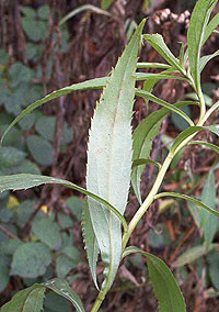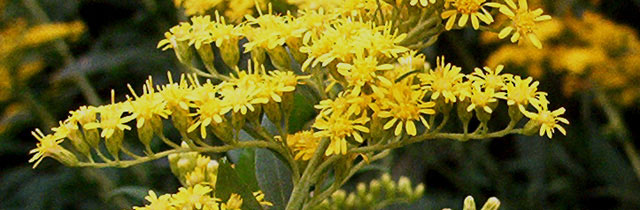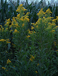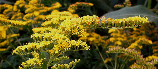 Eine Kuriosität am Rande: In den USA und in der Sowjetunion hat man in den 1930'ern Jahren versucht, die Goldrute Solidago leavenworthii TORR. et GRAY - beheimatet im Südosten der USA - zur Gewinnung von Naturkautschuk einzusetzen. Doch hat sich das Verfahren als nicht wirtschaftlich erwiesen, sodass man es bald wieder aufgab. Auch mit anderen Arten hat man es versucht - z.B. mit unserer Riesengoldrute Solidago gigantea AITON - doch war dies ein noch größerer Schlag ins Wasser ... Also bleibt die Goldrute, was sie ist: Eine hübsche (und manchmal unbequeme) Staude mit einem Nutzwert für den Menschen in der Heilkunde. (Fotos und Text: Dipl.-Biol. Ingo Schendel, 2003)