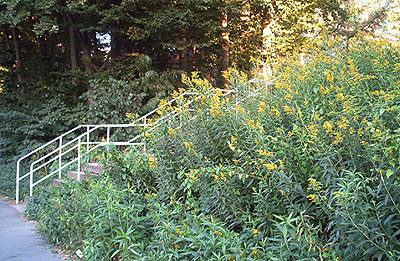 Staunässe ertragen die Goldruten jedoch nicht besonders gut, sodaß man sie durch "Vernässen" einer Fläche recht gut bekämpfen kann. Wo das nicht möglich ist, mäht man den Bestand ab und bedeckt die Fläche mit einer lichtundurchlässigen Folie. Auch das soll ihr den Garaus machen.